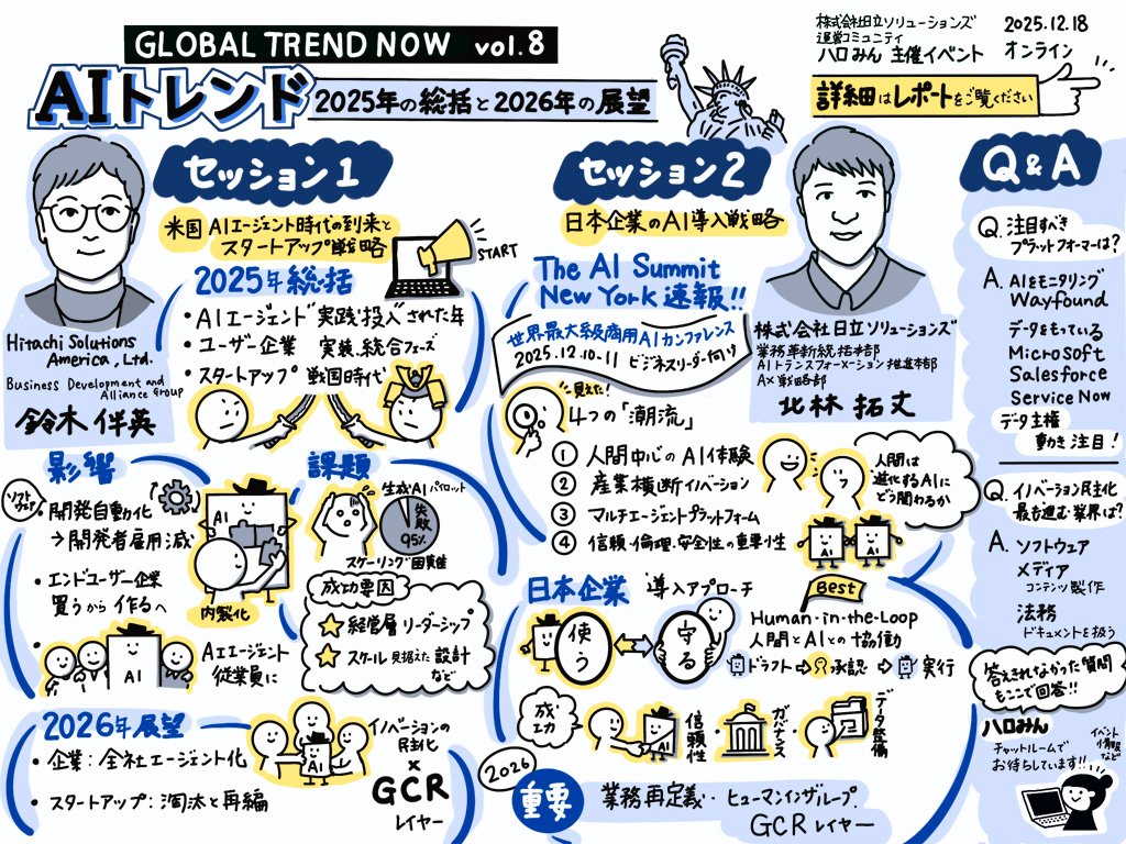 日立ソリューションズが運営するコミュニティ「ハロみん」は、2025年12月18日にオンラインイベント『GLOBAL TREND NOW Vol.8 ~AIトレンド 2025年の総括と2026年の展望~』を開催しました。