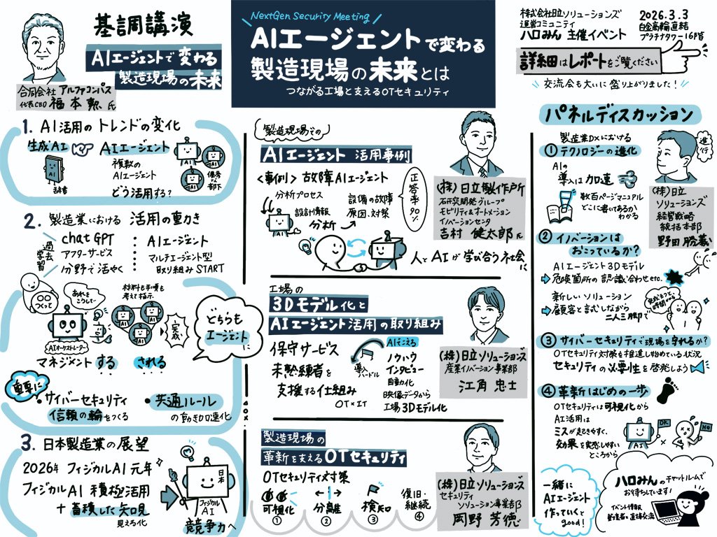 株式会社日立ソリューションズ(以下、日立ソリューションズ)が運営するコミュニティ「ハロみん」は、2026年3月3日に『NextGen Security Meeting AIエージェントで変わる製造現場の未来とは ~つながる工場と支えるOTセキュリティ~』を開催しました。