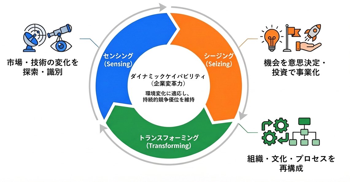 変化を「感知(センシング)」し、機会を「捕捉(シージング)」し、組織を「変革(トランスフォーミング)」する。
