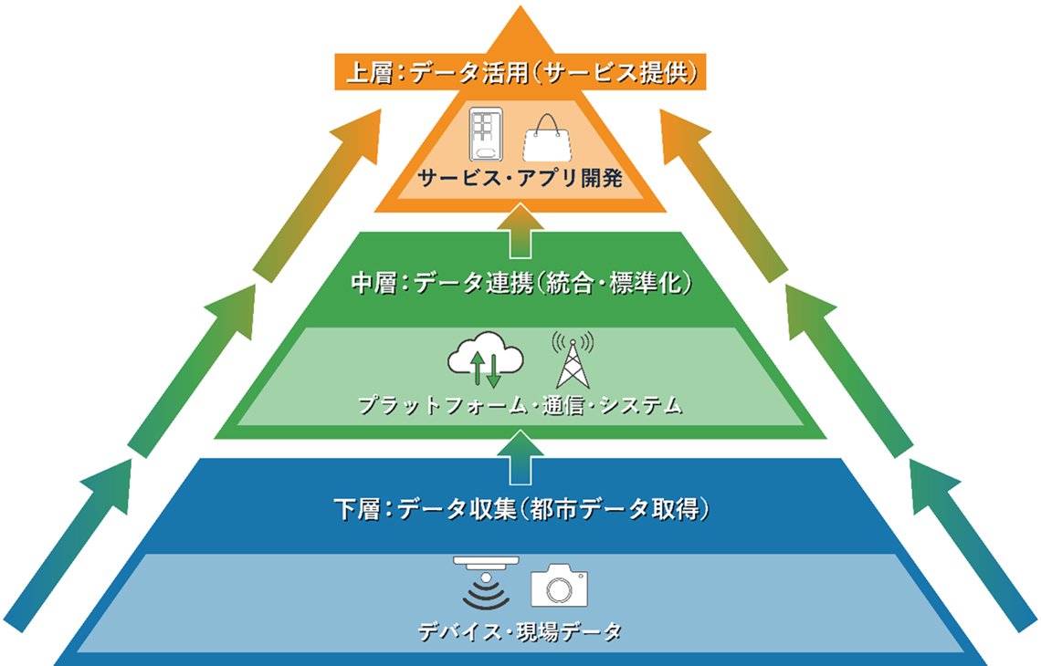 近年、日本では「デジタル田園都市国家構想」(※6)などの政策方針の下、スマートシティの社会実装が各地で進んでいます。国は「スマートシティ実装支援事業」(※7)を通じ、データ連携基盤(都市OS)の整備や成功モデルの横展開を後押ししてきました。